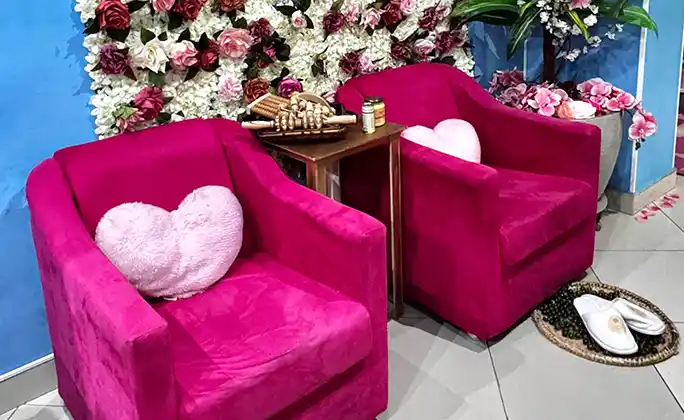 • Beleza Facial: massagem com rolinho de pedra jade e Máscara Facial pink com pepino nos olhos